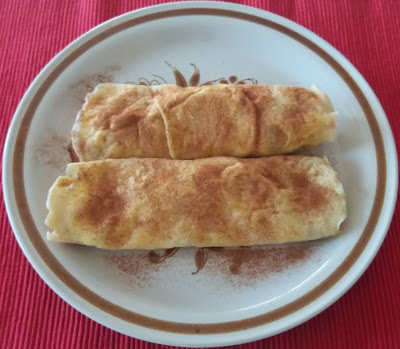 Enrole bem o crepe para fechar e polvilhe com mais um pouco de canela em pó.