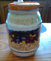 A filha de uma amiga fez anos, a moça adora fazer doces e por as mãos na massa!!! Então lembrei-me de lhe oferecer uma receita de bolachinhas no frasco (que chamei de Cookies de Pintarolas) e uns bombons feitos por mim (um miminho já pronto sabe sempre bem).